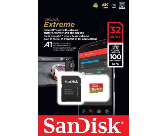 Карта памяти SanDisk (SDSQXAF-032G-GN6MN) 32GB microSDXC Class 10 UHS-I A1 C10 V30 U3 Extreme 100MB/s