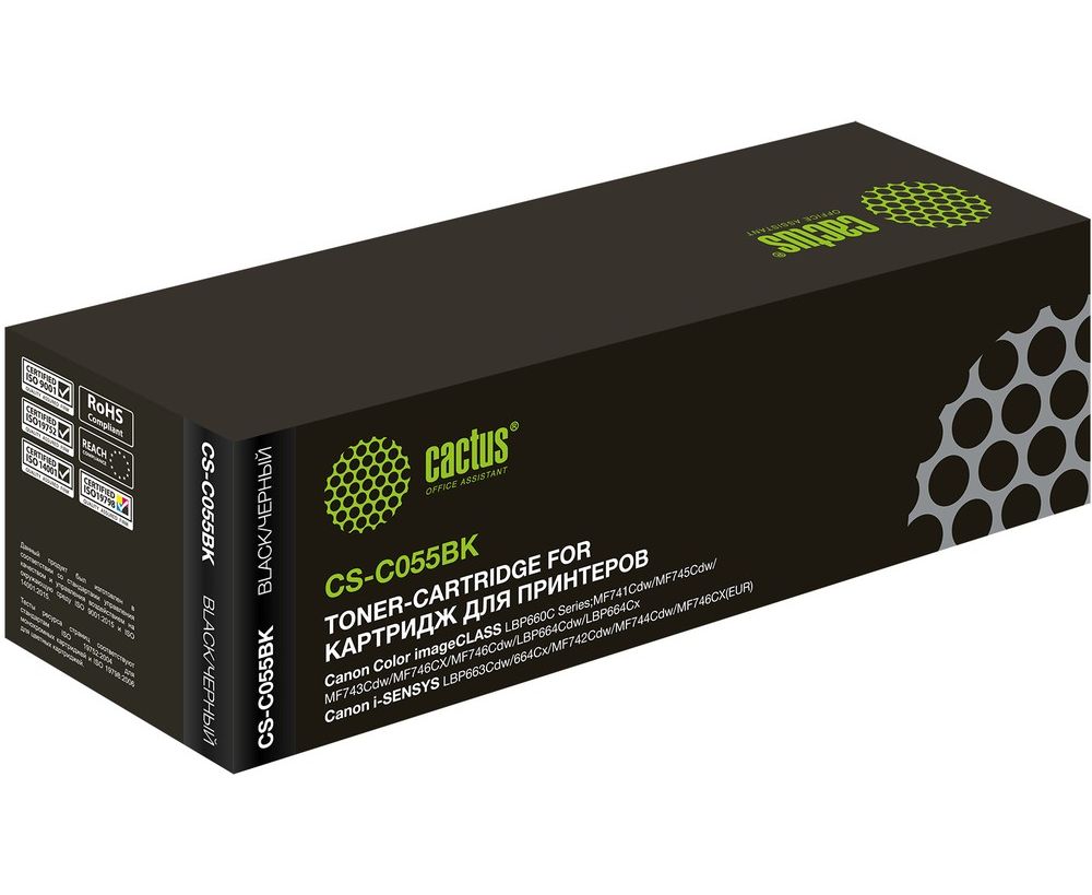 Картридж Cactus 055 BK (CS-C055BK) лазерный черный (2300стр.) для Canon LBP663Cdw, LBP664Cx, MF746Cx, MF742Cdw, MF744Cdw