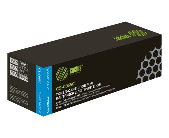 Картридж Cactus 055 C (CS-C055C) лазерный голубой (2100стр.) для Canon LBP663Cdw, LBP664Cx, MF746Cx, MF742Cdw, MF744Cdw
