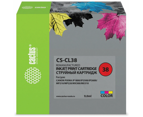 Картридж Cactus CL-38 (CS-CL38) струйный многоцветный (9мл) для Canon Pixma iP1800/iP1900/iP2500/iP2600/MP140/MP190/MP210/MP220/MP470/MX300/MX310