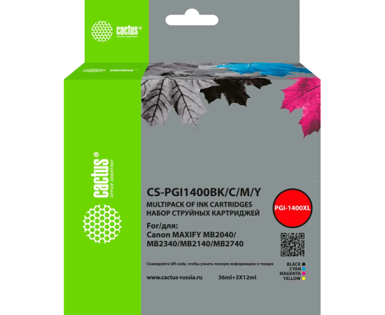 Картридж Cactus (CS-PGI1400BK/C/M/Y) 4цв. струйный набор (72мл) для Canon MB2050/MB2350/MB2040/MB2340