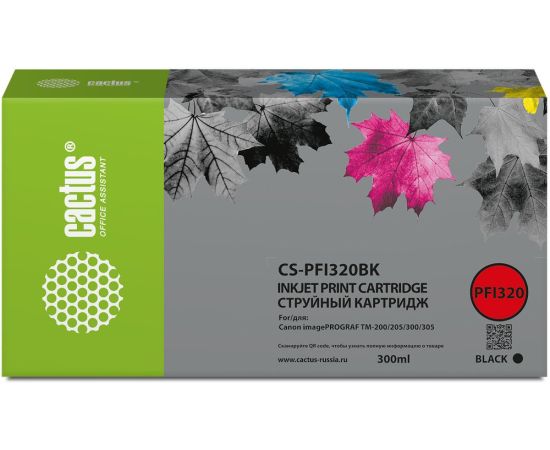 Картридж Cactus PFI-320BK (CS-PFI320BK) струйный черный (300мл) для Canon imagePROGRAF TM-200/TM-200 MFP L24ei/TM-205/TM-300