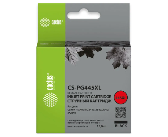 Картридж Cactus PG-445XL (CS-PG445XL) струйный черный (15мл) для Canon Pixma MG2440/2540/2940