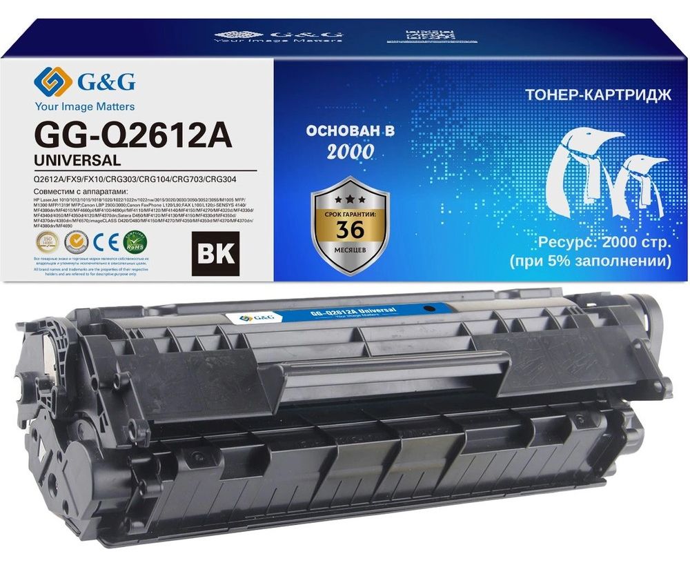 Картридж лазерный G&G GG-Q2612A GG-Q2612A universal черный (2000стр.) для HP 1010/1012/1015/1018/Canon LBP2900/3000/L120/L90/L100/L120/HP 1020/1022/30