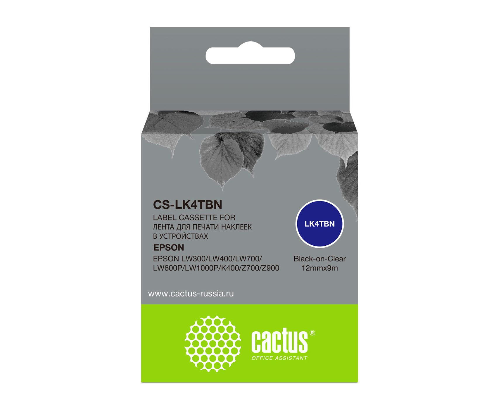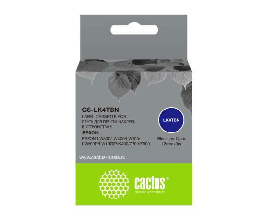 Картридж ленточный Cactus CS-LK4TBN черный для Epson LW300/LW400/LW700/LW600P/LW1000P/K400/Z700/Z900
