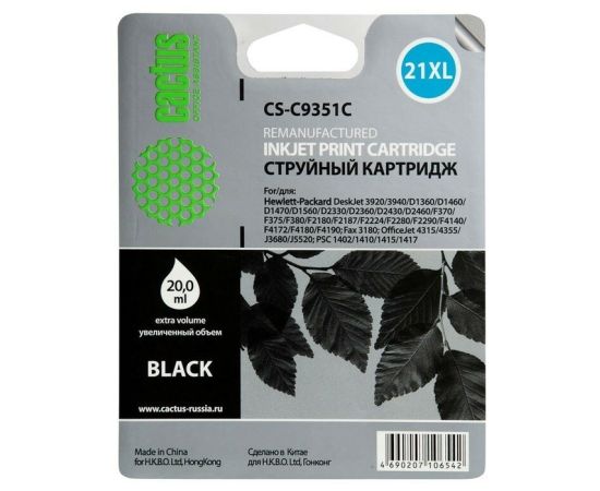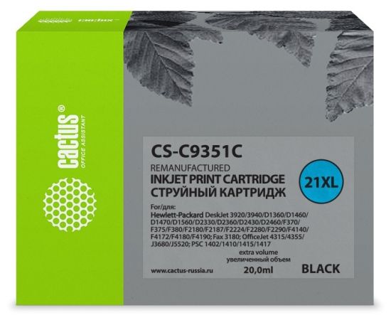 Картридж струйный Cactus CS-C9351C черный для №21XL HP DeskJet 3920/3940/D1360/D1460/D1470/D1560 (20