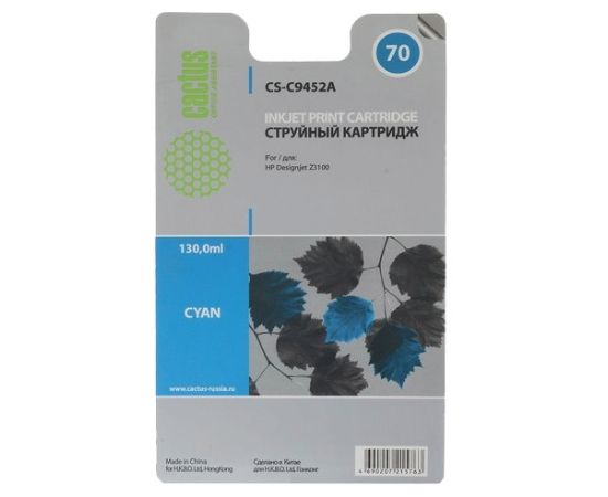 Картридж струйный Cactus CS-C9452A голубой для №70 HP Designjet Z3100 (130ml)