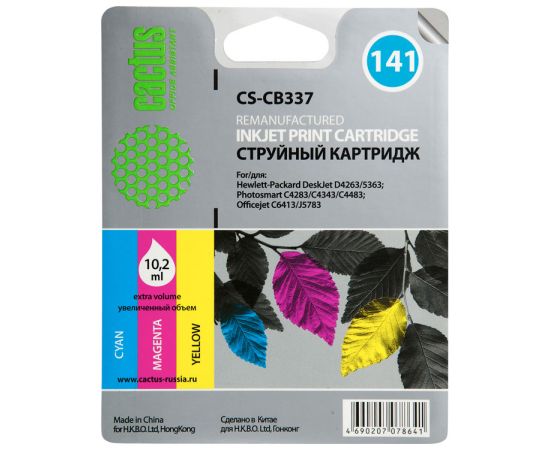 Картридж струйный Cactus CS-CB337 №141 многоцветный (9мл) для HP DJ D4263/D4363/D5360/DJ J5783/J6413