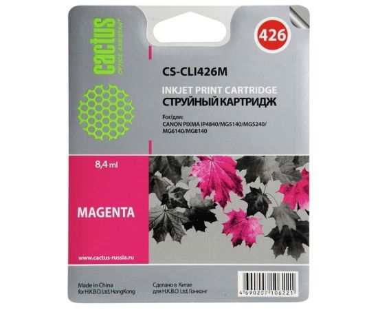Картридж струйный Cactus CS-CLI426M пурпурный для Canon MG5140 5240 6140 8140 MX884 (8,2ml)