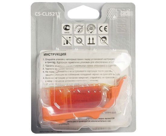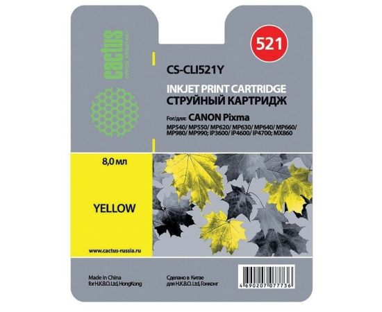 Картридж струйный Cactus CS-CLI521Y желтый для Canon Pixma MP540/ MP550/ MP620/ MP630; MX860,(8,2ml)