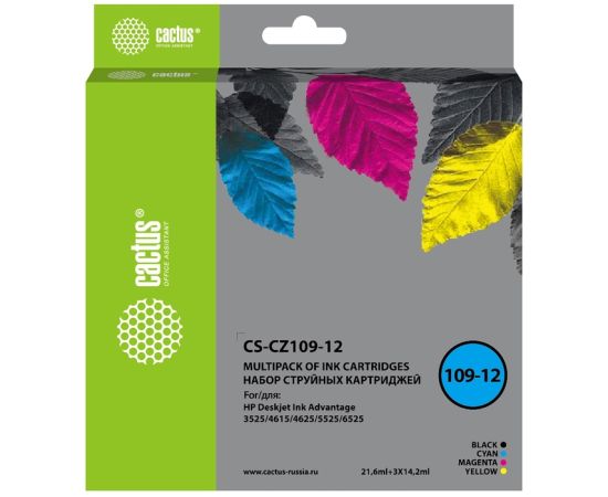 Картридж струйный Cactus CS-CZ109-12 черный/голубой/желтый/пурпурный набор (64.2мл) для HP DJ IA 3525/5525/4525