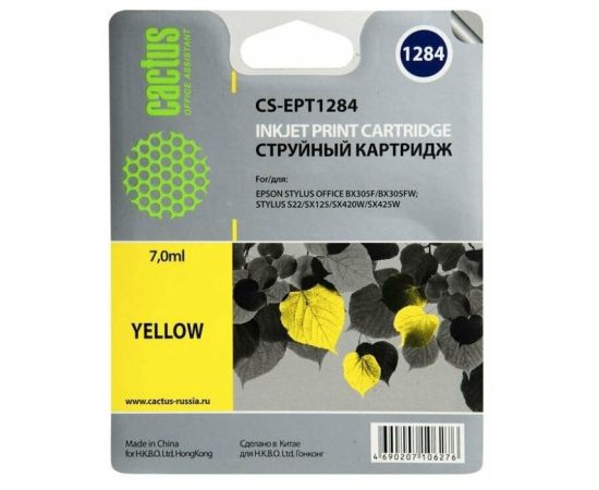 Картридж струйный Cactus CS-EPT1284 желтый для Epson Stylus S22/SX125/SX420/SX425 (7ml)