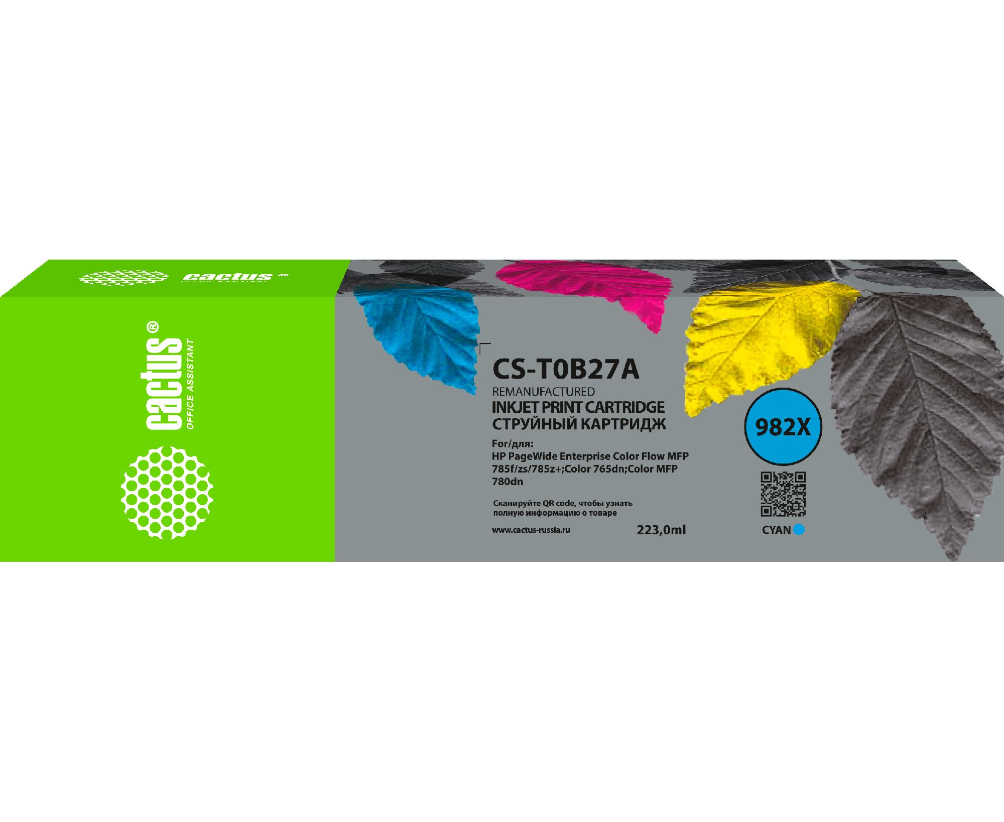 Картридж струйный Cactus CS-T0B27A 982X голубой 223мл для HP PageWide 765dn/780 Enterprise Color