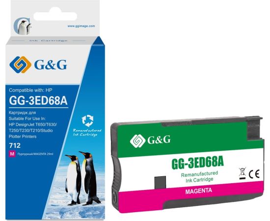Картридж струйный G&G GG-3ED68A 712 пурпурный (29мл) для HP DesignJet T650/T630/T250/T230/T210/Studio Plotter Printers