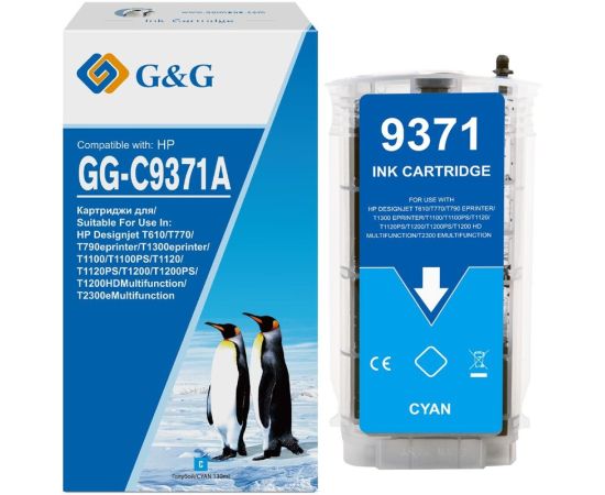 Картридж струйный G&G GG-C9371A голубой (130мл) для HP HP Designjet T610, T770, T790eprinter, T1300eprinter, T1100, T1100PS, T1120, T1120PS, T1200, T1