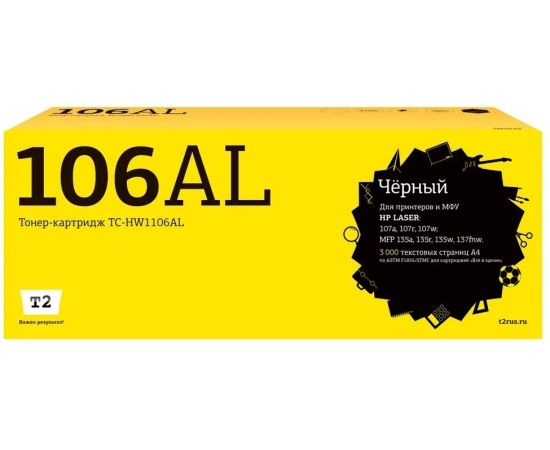 Картридж T2 W1106AL (TC-HW1106AL) черный для HP Laser 107a/107r/107w/MFP 135a/135r/135w/137fnw (2500 стр.) с чипом