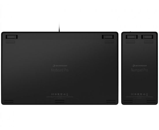 12 программируемых клавиш 3Dconnexion, 4 программируемые мультимедийные клавиши. Беспроводное соединение цифр.блока с основной клавиатурой (2.4GHz) или с ПК (Bluetooth), аккумулятор 350mAh, габариты - 229x114x16мм