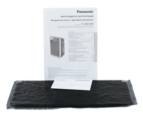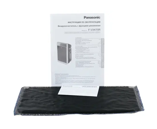 Модель Panasonic F-VXK70R-K снабжена дисплеем и гигростатом. Дополнительно есть функция ионизации. Есть резервуар для воды, объем которого составляет 3.5 л. Функция увлажнения работает на нем в течение 5.5 часов. Предусмотрена ночная функция с пониженным шумообразованием. Все управление климатическим комплексом сенсорное. Весит прибор 10.2 кг.