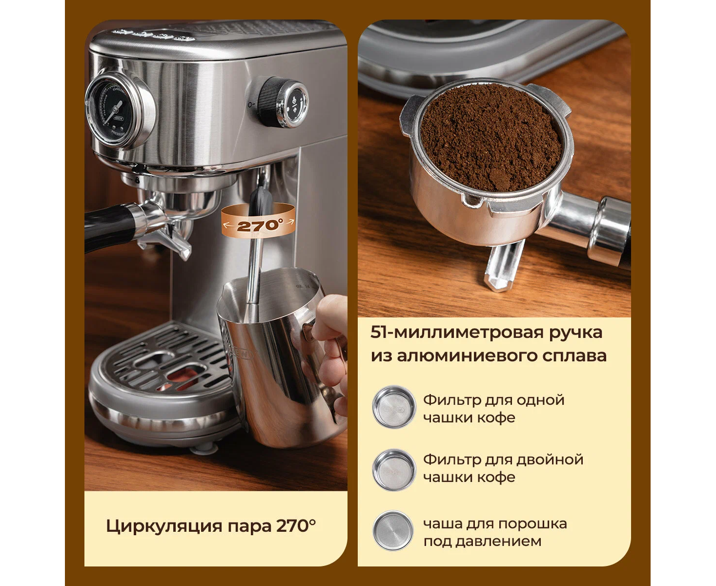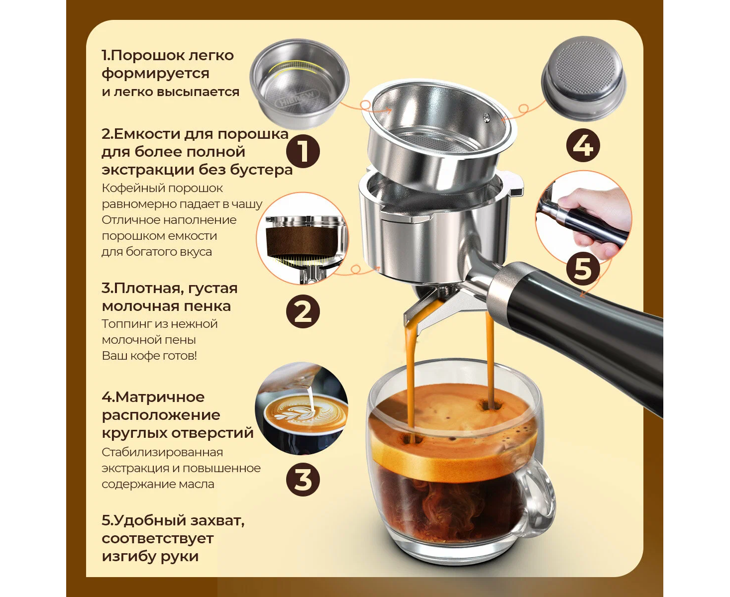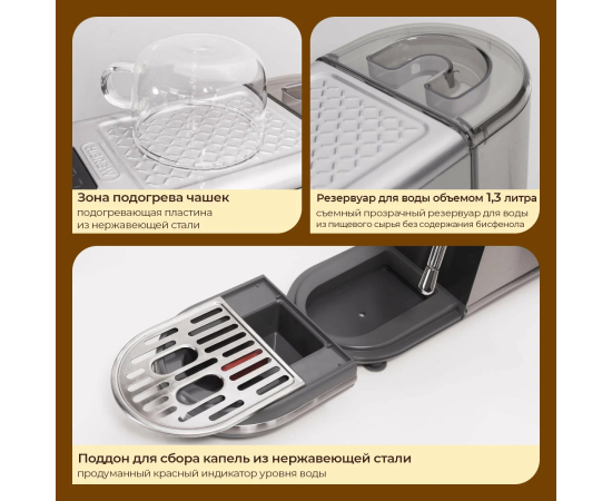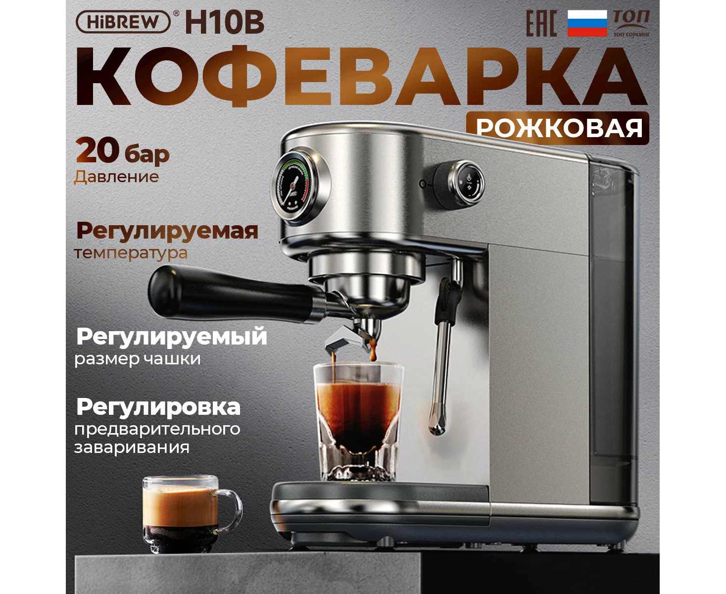 Основные характеристики Бренд Hibrew Цвет товара серый Версия универсальный Тип устройства кофемашина Тип комбинированная Тип используемого кофе молотый / зерновой Мощность 1230 Вт Объем 1.3 л Давление помпы 20 бар Капучинатор есть Приготовление капучино ручное Тип напитка американо, латте, эспрессо Дополнительные функции автоотключение после приготовления напитка, автоотключение при неиспользовании, подача горячей воды Настройки объем порции горячей воды Тип управления электронное Конструкция Фильтр постоянный Тип нагревательного элемента термоблок Материал корпуса пластик, сталь Особенности конструкции индикатор уровня воды, индикация отсутствия кофе, съемный лоток для сбора капель Умный дом Тип соединения устройств проводное Габариты и вес Глубина 20 см Ширина 41.3 см Высота 36 см Вес 4.7 кг