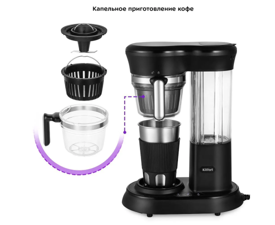 Кофемашина Kitfort КТ-7141 600Вт черный/нерж
