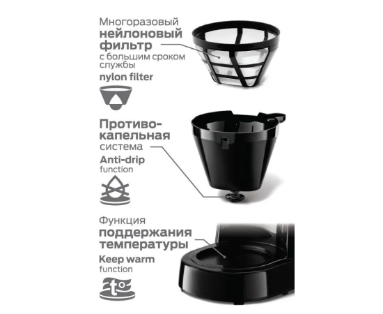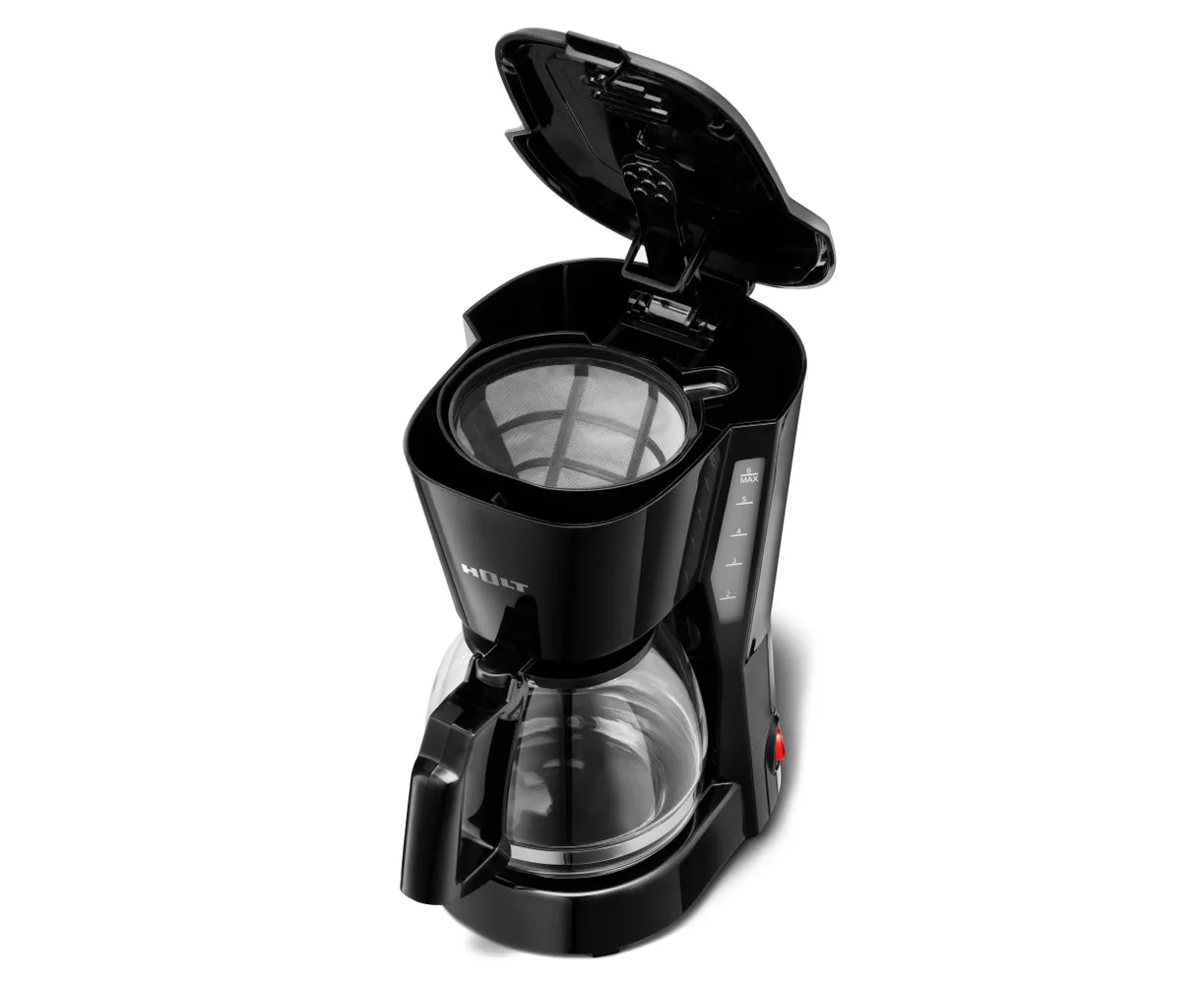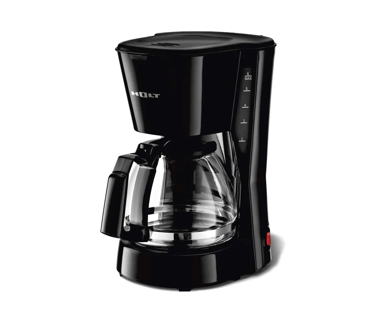 Электрическая кофеварка HOLT капельного типа мощностью 600 Вт предназначена для варки вкусного ароматного кофе и чая. Компактный размер позволяет разместить маленькую черную кофеварку на небольшой кухне в доме или офисе.
