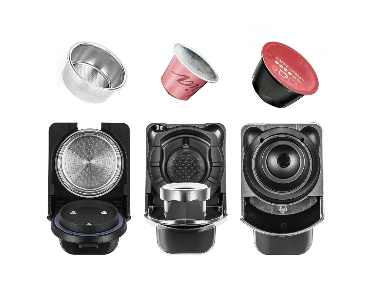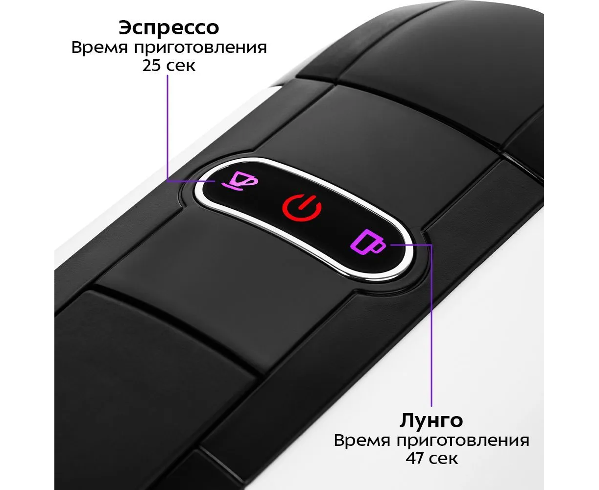 Кофеварка «3 в 1» КТ-7546 - многофункциональное устройство, сочетающее в себе функции капсульной и рожковой кофеварки. Капсульно-рожковая кофеварка поможет приготовить кофе эспрессо, американо или лунго, а также множество других видов кофе на ваш вкус. Благодаря адаптерам кофеварка подходит для капсул типа Nespresso и Dolce Gusto, а также для молотого кофе. Кнопка «Эспрессо» включает приготовление эспрессо (время приготовления - 25 с). Кнопка «Лунго» включает приготовление лунго (время приготовления - 47 с). Мощность 1450 Вт Ёмкость резервуара для воды 0,6 л Давление 19 бар Длина шнура 0,9 м Размер устройства 115 x 280 x 250 мм Размер упаковки 315 x 143 x 279 мм Вес нетто 3,0 кг Вес брутто 3,4 кг