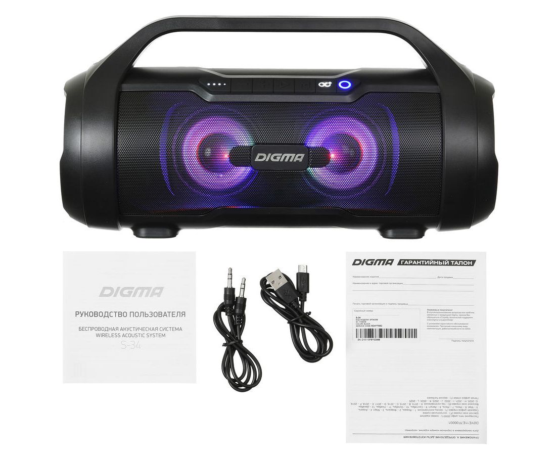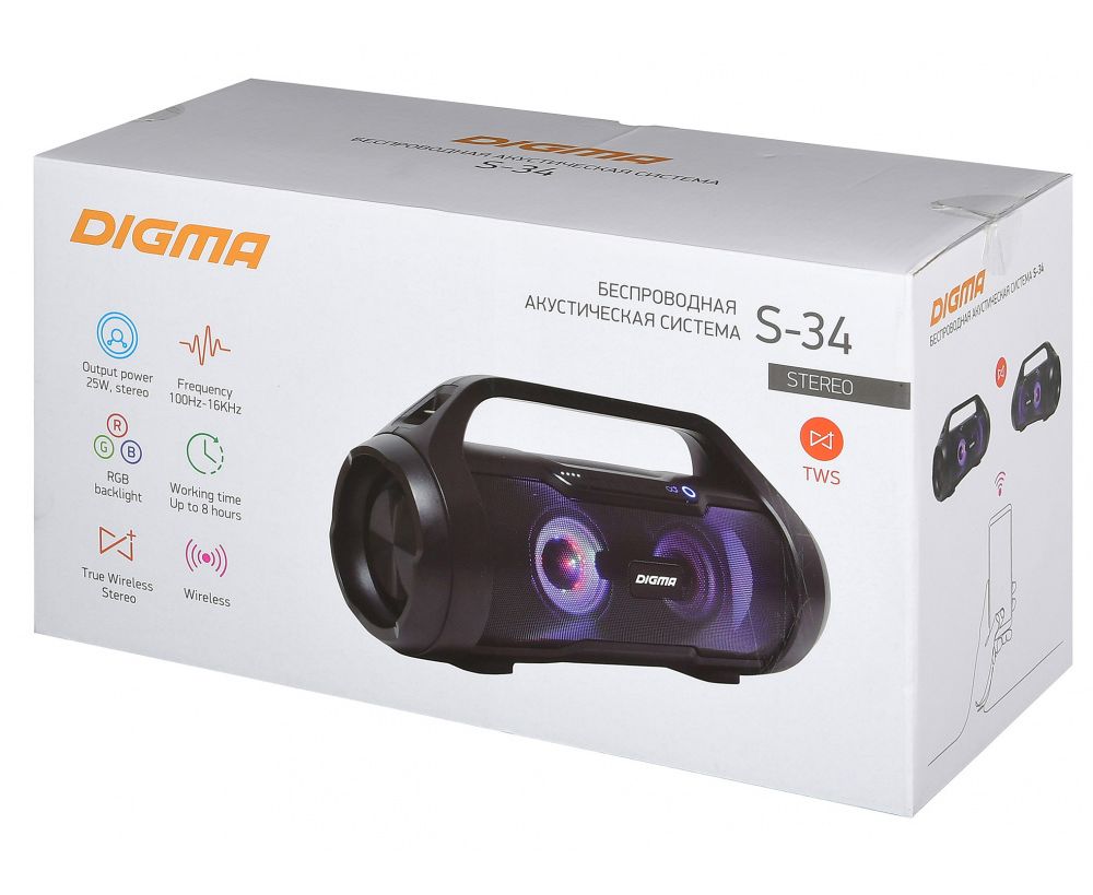 Колонка портативная Digma S-34 черный 25W 1.0 BT/USB 3000mAh (SP3425B)