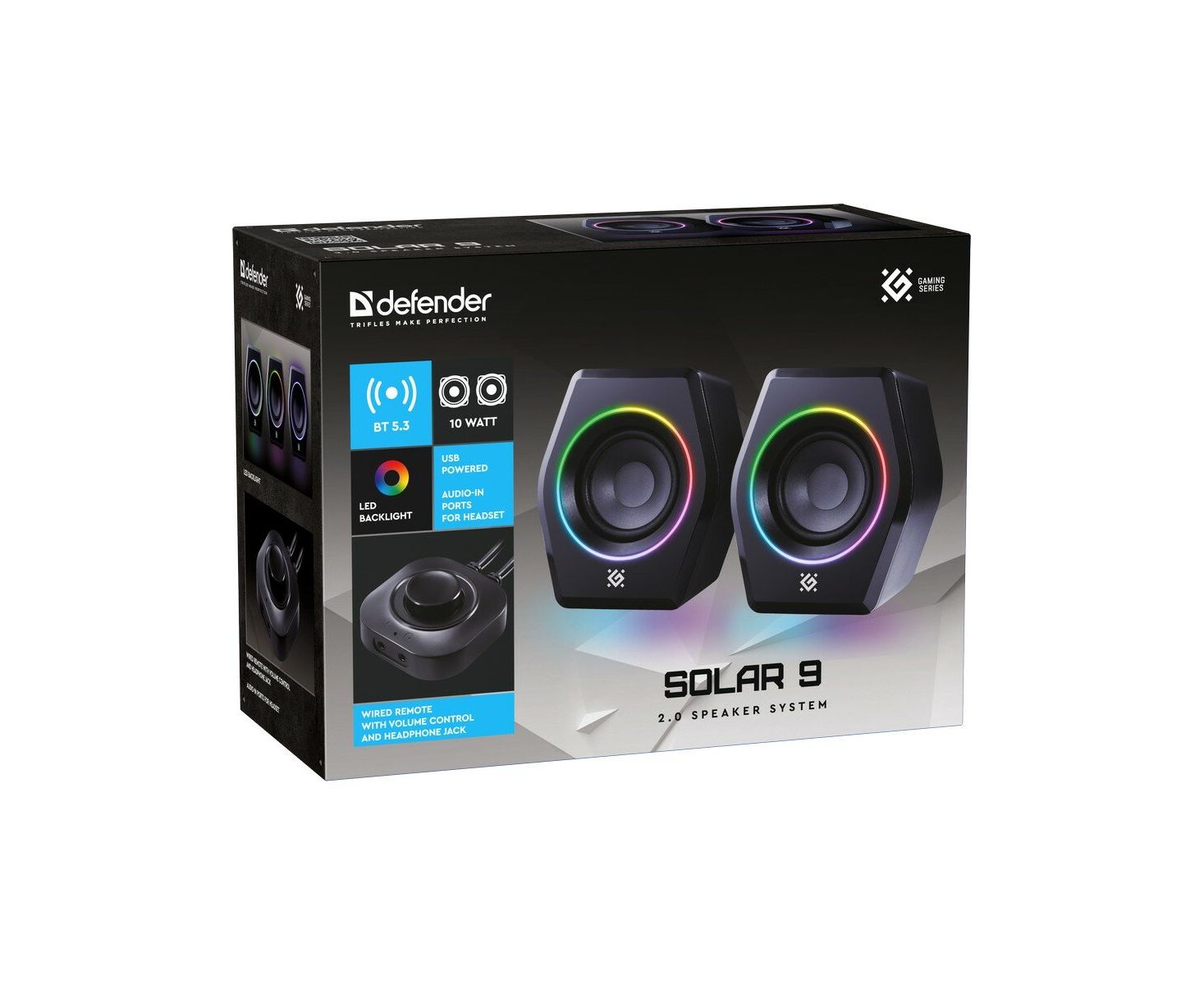 Акустическая система 2.0 DEFENDER Solar 9 10Вт, BT/Light питание от USB (65939)
