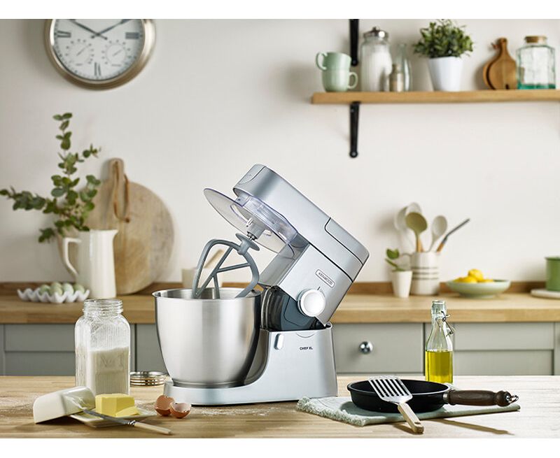 Кухонная машина Kenwood KVL4100S с электронной системой управления проста и удобна в использовании. Модель оснащена чашей объемом 6,7 л. За счет этого можно приготовить тесто весом до 4550 г. Световой индикатор сообщает о готовности устройства к работе. Кухонная машина оборудована тремя насадками, посредством которых можно использовать модель для смешивания как жидких, так и густых ингредиентов. Устройство имеет специальный кожух. Это упрощает процесс ухода за рабочей поверхностью и позволяет защитить одежду от брызг.