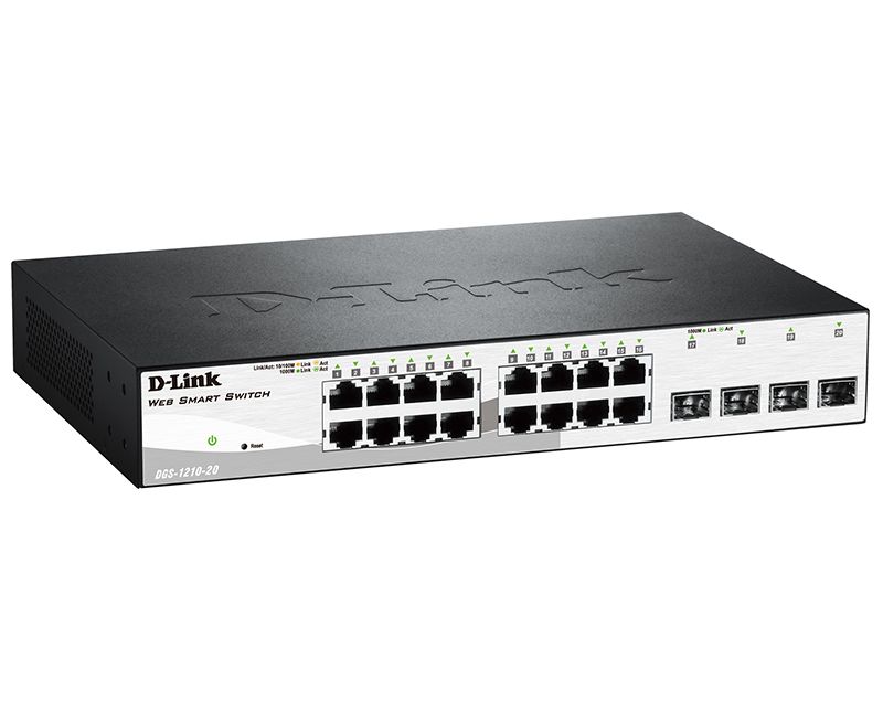 Настраиваемый коммутатор серии WebSmart DGS-1210-20, оснащенный 16 портами 10/100/1000Base-T и 4 комбо-портами 100/1000Base-T/SFP (DGS-1210-20/F)/4 портами 1000Base-X SFP (DGS-1210-20/C), поддерживает технологию D-Link Green и расширенные функции управления и безопасности, обеспечивая высокую производительность и масштабирование сети. Функции управления включают SNMP, управление на основе Web-интерфейса, утилиту D-Link Network Assistant и упрощенный интерфейс командной строки (CLI) через Telnet. DGS-1210-20 поддерживает Auto Voice VLAN, обеспечивая максимальный приоритет для «голосового» трафика. Данный коммутатор оснащен пассивной системой охлаждения, которая обеспечивает бесшумную работу и позволяет продлить срок эксплуатации устройства.