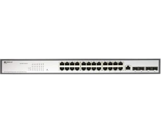 Коммутатор настраиваемый Origo OS2328P/360W/A1A (L2) 24x1Гбит/с 4xКомбо(1000BASE-T/SFP) 24PoE 360W
