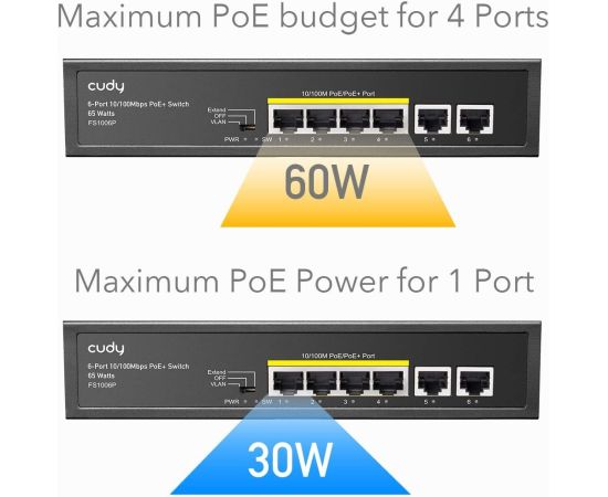 Коммутатор неуправляемый Cudy FS1006P (L2) 6x100Мбит/с 4PoE+ 60W