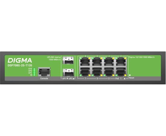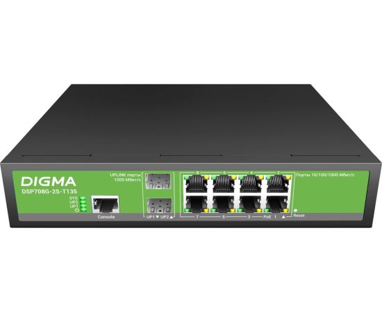 Коммутатор управляемый Digma DSP708G-2S-T135 (L2+) 8x1Гбит/с 2SFP 8PoE 8PoE+ 135W