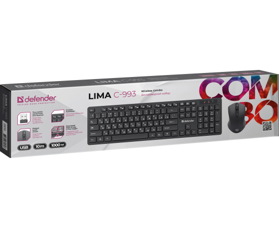 Клавиатура + мышь DEFENDER Lima C-993 RU,черный,полноразмерный