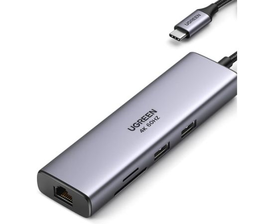 Конвертер UGREEN CM512 (90568) USB-C to 2*USB3.0+HDMI+RJ45+SD TF +PD Port Converter серый