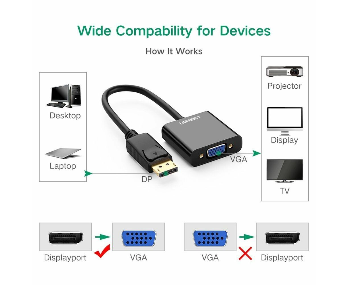 Конвертер UGREEN DP109 20415 DP Male to VGA Female Converter Black