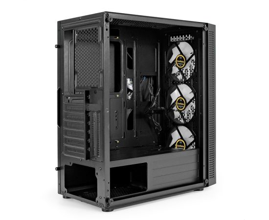 Корпус ExeGate EVO-5001A EX295766RUS Miditower (ATX, без БП, 2*USB+1*USB3.0+HD Audio, черный, 3 вент.12см с RGB, бок. панель - зак. стекло)