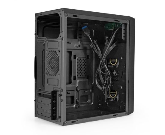Корпус Exegate mEVO-7803 EX296979RUS Minitower (mATX, без БП, 2*USB+1*USB3.0, HD аудио, черный, 2 вент. 12см с RGB подсветкой)
