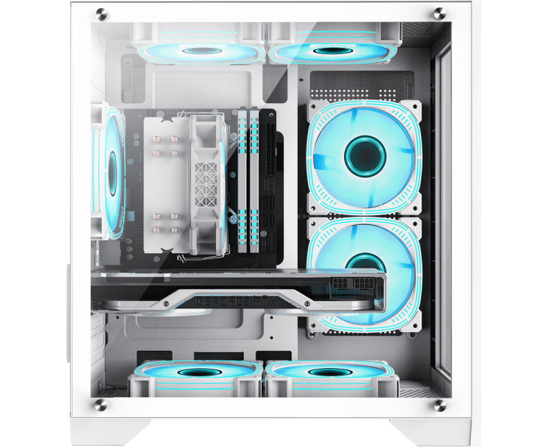 2 x 120 мм на верхней панели, 2 x 120 мм на боковой панели, 120 мм на задней панели, 2 x 120 мм на нижней панели