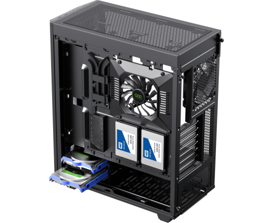 в верхнюю панель можно установить до двух вентиляторов 120 мм;
