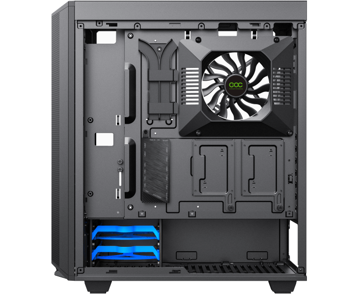 с внутренней стороны боковой стенки предустановлен вентилятор COC Turbo для охлаждения сокета;