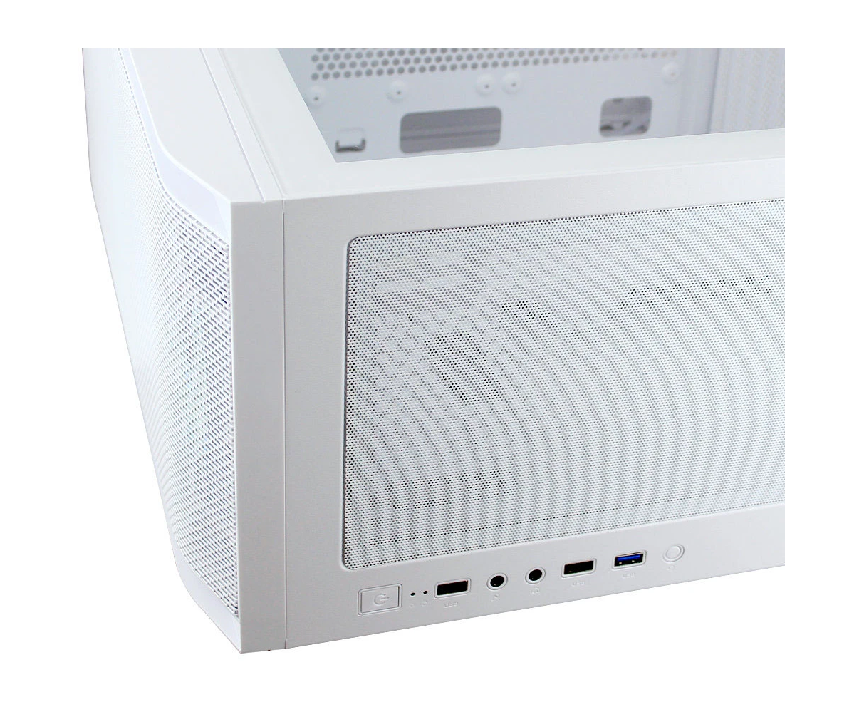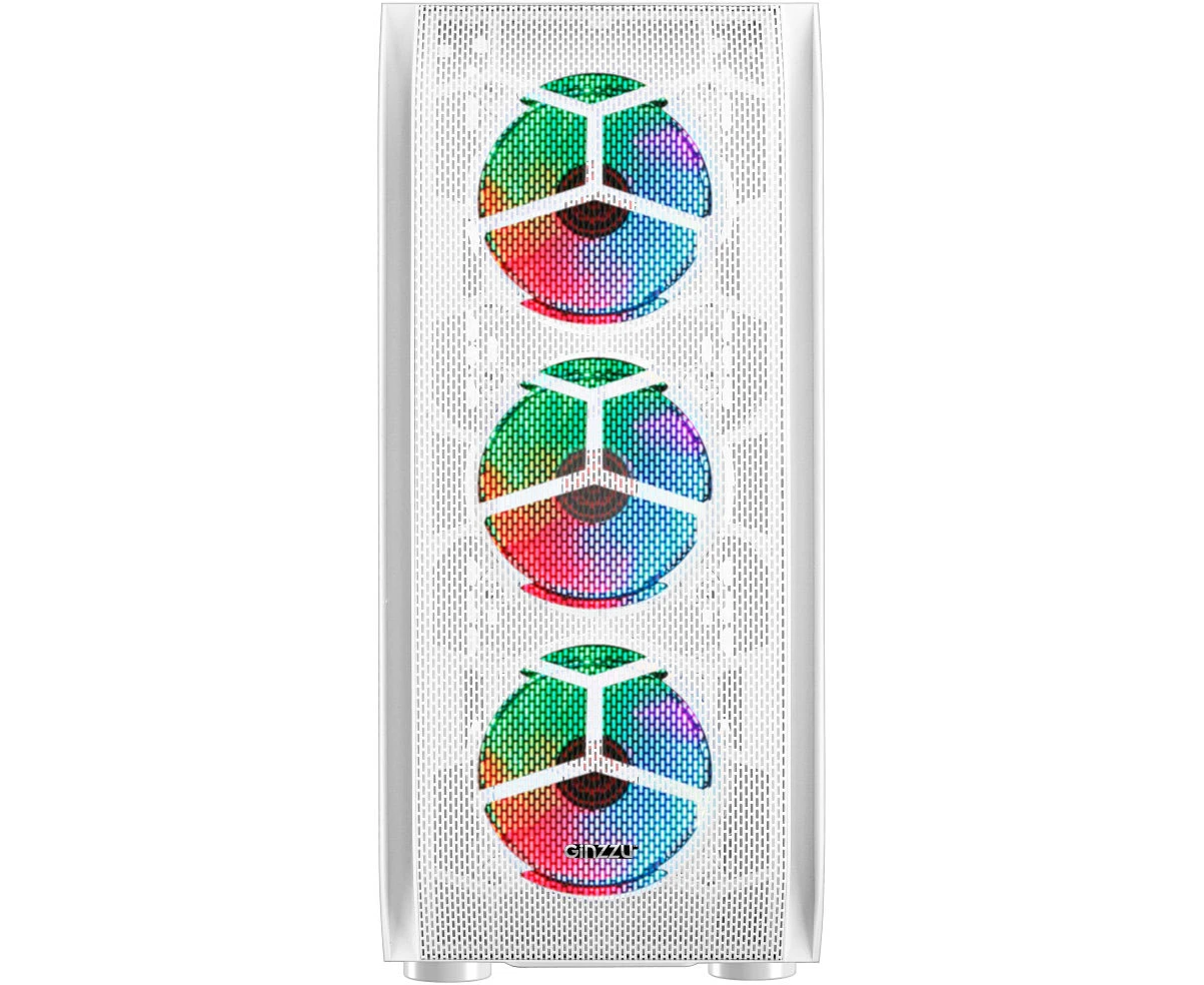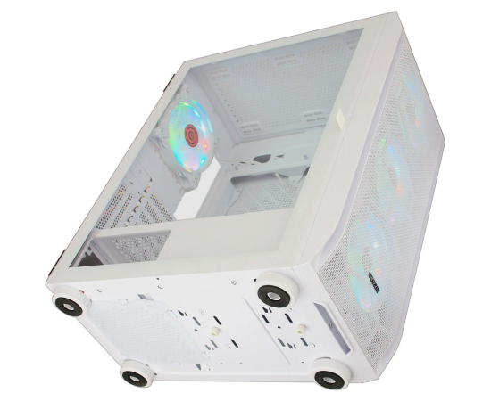 Корпус Ginzzu GL 390 боковая дверца закаленное стекло на петлях на магнитах, controller CRC10, 4* 12R6W Fan 12см RGB белый