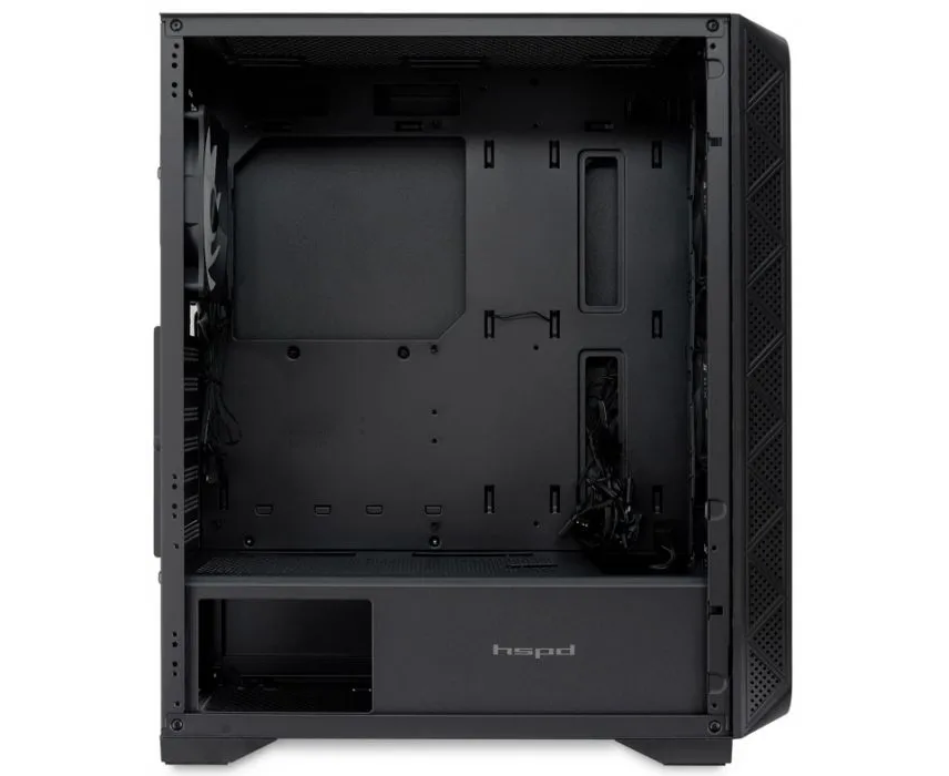 Корпус HSPD M521 (M521-TGBK-ARGB), Mesh Mid Tower, Black, slide TG, 0.45 SPCC, 4x120mm ARGB ATX