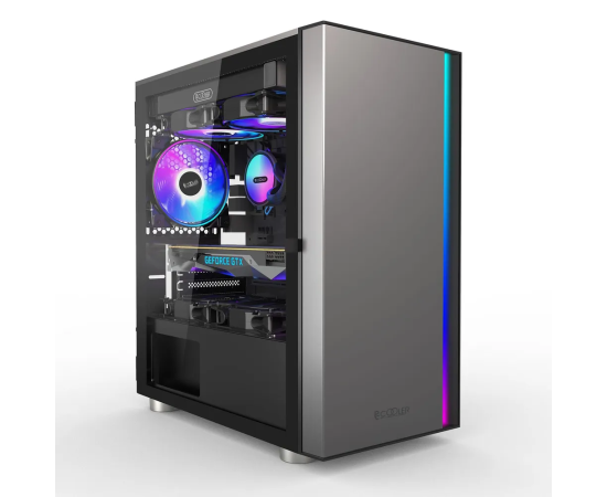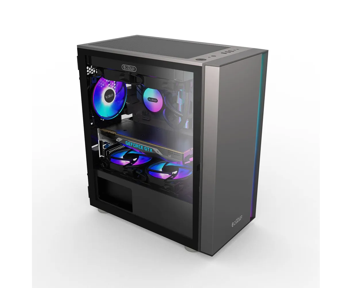 Корпус PcCooler LM300 ARGB BK, без БП, Flat Mid Tower, Black, TG, 0.45 SPCC, 1x120mm mATX, mITX 170/330/150mm 2x2.5", 5xPCI 1xUSB-A 3.0,