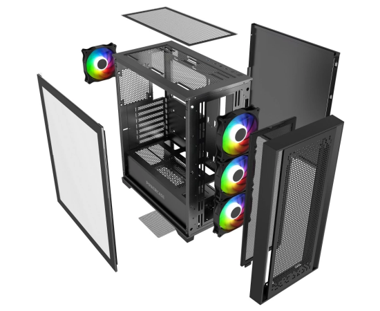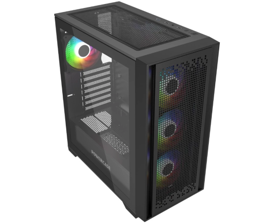 Корпус Powercase ByteFlow Micro Black (CAMBFB-A4), Tempered Glass, 4х 120mm ARGB fans, ARGB HUB, чёрный, mATX