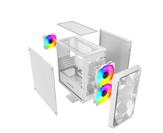 Корпус Powercase Mistral Micro A3W ARGB (CMMAW-A3), Tempered Glass, 2x 140mm ARGB PWM+1x 120mm ARGB PWM, белый, mATX