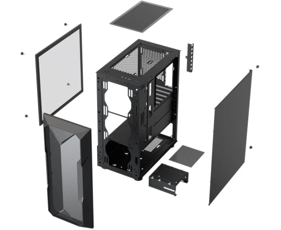 Корпус XASTRA A304 4ARGB-C6 Black (A304-4FC12A-C6) ATX/Mesh/half-size TG/4x120mm ARGB FC fans/Argb+PWM HUB 6port