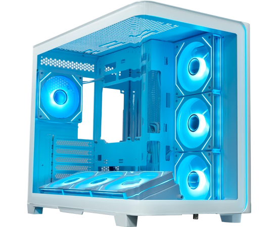 Корпус XASTRA QR600 7ARGB C10-UC (QR600-7FM12A-C10-UC-L-WH) White ATX/Aquarium/Curve Glass/Led Strip/ 7x120mm ARGB PWM FM fans/ Argb+PWM HUB 10port