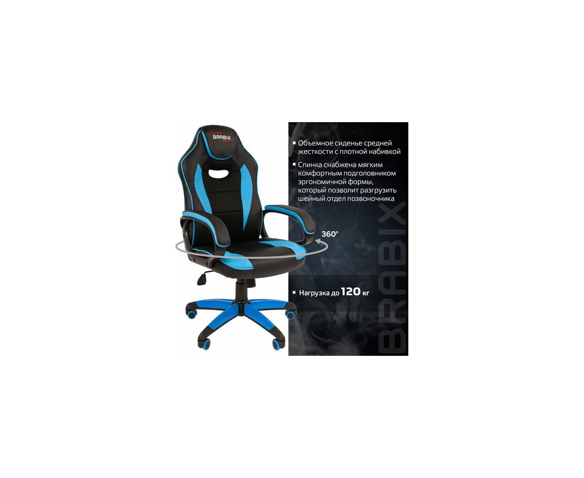 Компьютерное кресло BRABIX Blaze GM-162, TW/экокожа, черное/голубое 532578 предназначено для работы за компьютером.
