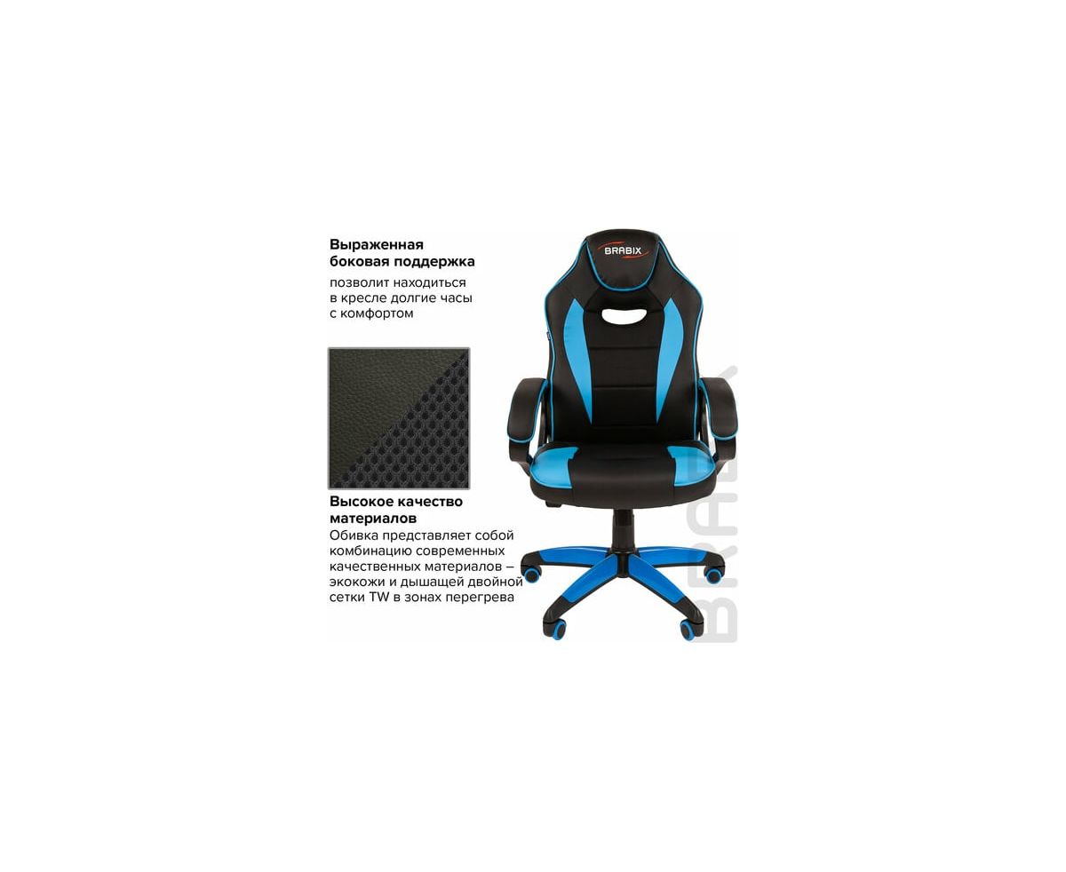 Кресло игровое BRABIX Blaze GM-162 (532578) TW/экокожа, черное/голубое